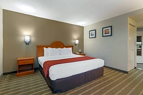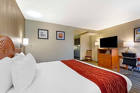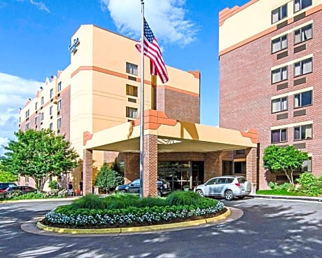 The Comfort Inn University Center hotel is conveniently located near many area attractions like George Mason University, the Eagle Bank arena, the Washington Convention Center and the Washington Monument. The Washington Dulles International Airport is only 13 miles away and the Ronald Reagan Washington National Airport is only 20 miles away. The Fairfax County Government Center, NRA National Firearms Museum, Jiffy Lube Live and Smithsonian National Air and Space Museum are also located near this Fairfax, VA hotel. There are a number of restaurants and cocktail lounges located in the surrounding area. The 703 Thai restaurant is located in the hotel and serves lunch and dinner and includes a bar. We serve breakfast bags to go only. Guests of this Fairfax, VA hotel will also enjoy many other fine amenities, including a free exercise room, gift shop, and free parking. Business travelers will appreciate conveniences like the free business center, wireless high-speed Internet access and fax services. There are meeting rooms available for hosting business functions and special events. All guest rooms of this Fairfax, Virginia hotel include microwaves, refrigerators, hair dryers, irons and ironing boards. In addition to standard amenities, certain rooms also feature whirlpools and kitchenettes. This is a 100 percent nonsmoking hotel. Guest laundry facilities are located in the hotel for guests' convenience. This is a pet-friendly hotel; fees apply.