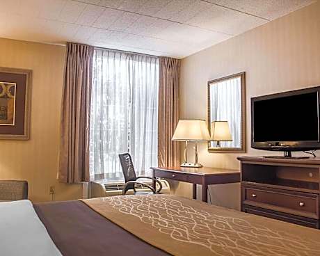 Located in Wethersfield, Connecticut, this hotel is within 10 minutes' drive of Dinosaur State Park, Hartford-Brainard Airport and the Hartford city center. An indoor pool and sauna are offered. Free WiFi is available. A flat-screen TV is offered in each room at the Comfort Inn Wethersfield - Hartford. The rooms also include a microwave, a refrigerator and a coffee maker. A fitness center, a business center and laundry facilities are offered at the hotel. A hot breakfast is served daily. This hotel is located off Interstate 91 offering easy access to Six Flags New England, a 33-minute drive away. The Connecticut Science Center is 7 mi from the hotel.