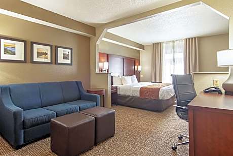 The Comfort Suites Knoxville Airport in Alcoa is located less than one mile from the McGhee Tyson Airport. This Alcoa, TN hotel is convenient to Great Smoky Mountains National Park, Cades Cove, the Knoxville Convention Center, the University of Tennessee and Maryville College. Be sure to visit the neighboring cities of Knoxville, Oak Ridge, Townsend, Pigeon Forge and Gatlinburg. Additional points of interest near this Alcoa, TN hotel include Tuckaleechee Caverns, Neyland Stadium, Blount Memorial Hospital, Alcoa Aluminum and McGhee Tyson Air National Guard Base. Enjoy browsing local museums and a wide variety of specialty shops. There are several restaurants and cocktail lounges located in the surrounding area, many are within walking distance. Full-service features and amenities include free airport transportation; ask about Stay & Fly packages, free high-speed Internet access, free weekday newspaper and free local calls. Enjoy our free hot breakfast featuring eggs, meat, yogurt, fresh fruit,cereal and more. If you're leaving early, a Your Suite Success Grab & Go bag is available for the two hours prior to breakfast. Guests are invited to take advantage of the exercise room or relax in the indoor pool and hot tub. Guest laundry facilities are conveniently located on the property. Business travelers can appreciate oversize desks, voice mail and access to copy and fax services. There is also the convenience of an on-site business center. This Alcoa hotel has meeting facilities available to accommodate most events and business functions. All smoke-free spacious suites have separate living and sleeping areas, microwaves, refrigerators, coffee makers, hair dryers, irons, ironing boards and cable television. Keep your electronic devices charged with the recharge device including AC and USB outlets provided in all guest rooms. Deluxe whirlpool suites feature heart-shaped bathtubs, providing an ideal escape for a romantic getaway.