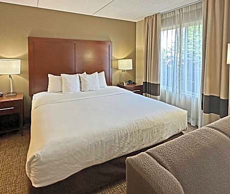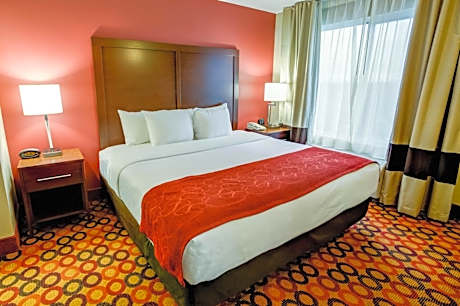 The Comfort Suites Concord Mills hotel is located off Interstate 85, only 12 miles from the Charlotte Douglas International Airport. The hotel is located midway between Charlotte Motor Speedway and Concord Mills mall, one of North Carolina's top tourist attractions. This hotel is convenient to area attractions such as the University of North Carolina at Charlotte, Verizon Wireless Amphitheater Charlotte, Bank of America Stadium, the Discovery Place science center, and the Time Warner Cable Arena. Carowinds theme park is 21 miles away. Several shops and restaurants are within walking distance of the hotel. Hotel amenities and features include free wireless high-speed Internet access, free local calls, free newspapers, free coffee, and free hot breakfast. Business travelers can access the fully equipped business center, voicemail, and copy and fax services. All suites include coffee makers, irons, ironing boards, and hair dryers. Some suites also include refrigerators, microwaves, and wet bars. Guests can keep their electronic devices charged with the recharge device, including AC and USB outlets, provided in all guest rooms. Guest laundry facilities are located on the property.