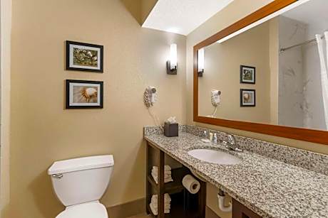 The Comfort Suites At the University is located 10 miles from the Myrtle Beach International Airport. This Conway, SC hotel is minutes from championship golf courses like the Wild Wing Plantation and Legends Golf Club. Coastal Carolina University, the Myrtle Beach Speedway and Broadway at the Beach, offering more than 350 acres of shops, restaurants, nightlife and attractions, are just minutes away. Nearby points of interest include Tanger Factory Outlets, Freestyle Music Park, Coastal Grande Mall, Historic Downtown Conway, many outlet and specialty malls. A variety of restaurants and cocktail lounges are located in the surrounding area. Hotel amenities and features include free USA Today newspaper, free local calls, seasonal outdoor pool with sundeck and an exercise room Enjoy our free hot breakfast featuring eggs, meat, yogurt, fresh fruit, cereal and more, including your choice of hot waffle flavors! If you're leaving early, a Your Suite Success Grab & Go bag is available for the two hours prior to breakfast. This Conway, SC hotel provides business travelers with conveniences like free high-speed Internet access in all suites, a business center and access to copy and fax services. The meeting room accommodates up to 40 people for most events and business functions. This all-suite hotel features suites with refrigerators, microwaves, coffee makers, irons, ironing boards, hair dryers and cable television with HBO. One-room suites with sofas and sofa sleepers are available. Suites with whirlpool bathtubs are also available. This is a pet-friendly hotel.