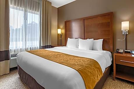 The Comfort Suites Coralville I-80 is located four miles from the University of Iowa, Carver-Hawkeye Arena sports facility, Hancher Auditorium and Kinnick Stadium football field, allowing for convenient access to everything the university has to offer. The hotel is only two miles from the University of Iowa Hospitals and Clinics. The historic utopian society of the Amana Colonies is located just 10 miles away in the rolling hills of Iowa's River Valley. This Coralville, IA hotel is also ideally located only one block from Coral Ridge Mall, providing easy access to shopping, dining and entertainment. Enjoy our free hot breakfast featuring eggs, meat, yogurt, fresh fruit, cereal and more, including your choice of hot waffle flavors! If you're leaving early, a Your Suite Success Grab & Go bag is available for the two hours prior to breakfast. Guests of the Comfort Suites hotel will enjoy the convenience of full-service amenities, including free coffee. This hotel also features a fitness center, indoor heated pool and a hot tub. Business travelers will appreciate conveniences like free wireless high-speed Internet access in all rooms, voice mail and free copies. All suites feature microwaves, refrigerators, coffee makers, hair dryers, irons and ironing boards. Keep your electronic devices charged with the recharge device including AC and USB outlets provided in all guest rooms. This Coralville, IA hotel also offers guest laundry facilities and valet cleaning services for guest convenience. Bus parking is available for groups.
