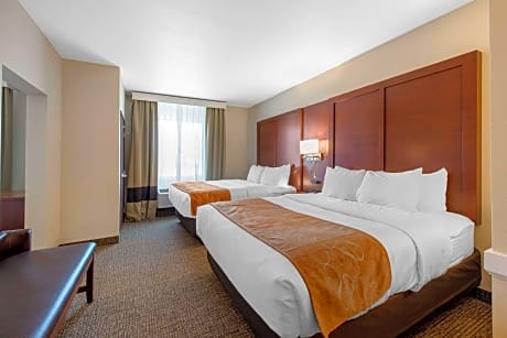 Located in Denver and with Union Station reachable within 17 miles, Comfort Suites Denver International Airport provides express check-in and check-out, allergy-free rooms, a fitness center, free WiFi throughout the property and a shared lounge. This 3-star hotel offers free shuttle service and a 24-hour front desk. The hotel features an indoor pool and luggage storage space. All units are equipped with air conditioning, a flat-screen TV with cable channels, a fridge, a coffee machine, a shower, free toiletries and a desk. Each room includes a private bathroom with a hairdryer, while some feature mountain views. Guest rooms include a closet. Buffet and American breakfast options are available at the hotel. A business center and vending machines with snacks and drinks are available on site at Comfort Suites Denver International Airport. Colorado Convention Center is 17 miles from the accommodation, while Pepsi Center is 17 miles away. Denver International Airport is 0.6 miles from the property.