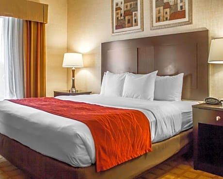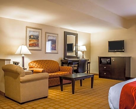 The Comfort Suites hotel is located off Interstate 79 between Erie and Meadville, within minutes from Edinboro University and Culbertson Hills Golf Course. The hotel is a short drive from Millcreek Mall, Presque Isle State Park, Waldameer Amusement Park, and Presque Isle Downs and Casino. This area of Pennsylvania features a variety of outdoor recreational activities like swimming, boating and hiking. Several restaurants and cocktail lounges are located near the hotel. The hotel provides many features, including free wireless high-speed Internet access, fresh-popped popcorn each evening, climate-controlled indoor pool, seasonal outdoor patio, on-site exercise room and hot tub area. Free hot breakfast is provided. In case that guests are leaving early, there is a breakfast bag available for the two hours prior to breakfast. Free cookies are provided in rooms daily. A business center complete with workstations and fax and copy service are available for business travelers. Guest rooms feature refrigerators, microwaves, flat-screen televisions, hair dryers, coffee makers, irons, ironing boards and either a recliner or chair and ottoman. Hot tub suites are also offered.