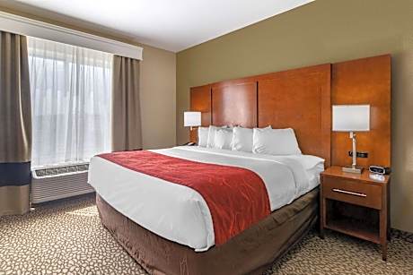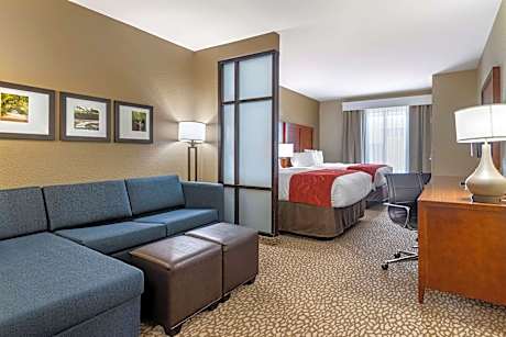 This all-suite hotel features an indoor heated pool, gym and spacious accommodations with a flat-screen cable TV and free Wi-Fi. Comfort Suites Florence is 4 miles from the Florence Amtrak. A microwave, refrigerator and coffee maker are included in each contemporary suite. Decorated with a red wall and dark furniture, the suites have a sofa bed and a work desk. Guests can enjoy a daily continental breakfast. The hotel also offers a sundry shop and a business center. Florence Comfort Suites is within a 10-minute drive of Beaver Creek Golf Club, Palmetto Shores Lake and Darlington Raceway.