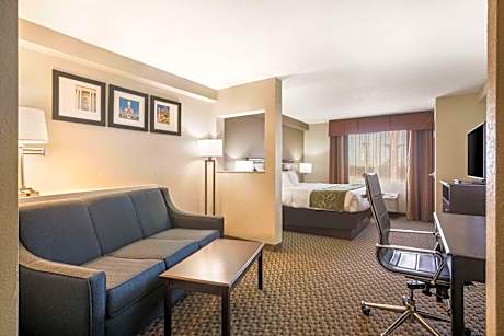 Located in the historic district of Forsyth, the Comfort Suites hotel's location offers easy access to many area attractions and businesses. This Forsyth, GA hotel is close to the Macon Centreplex entertainment facility and convention center featuring the Macon Coliseum, the Museum of Arts and Sciences and the Grand Opera House of Mercer University. Our area offers many things to do and see. Be sure to check out the various events held here annually, including the Forsythia Festival and the Cherry Blossom Festival. Outdoor enthusiasts will enjoy Lake Juliette, High Falls State Park and Indian Springs State Park, all only a quick drive away. The hotel is also just minutes from the Georgia Public Safety Training Center and the Whistle Stop Cafe, made famous by the movie Fried Green Tomatoes . The numerous shops at nearby Macon Mall and local specialty restaurants are sure to satisfy all shopping and dining needs. This Forsyth, GA hotel offers many amenities, such as free high-speed Internet access, indoor heated pool, hot tub and fitness center. Your Morning Breakfast is full of hot and delicious options, making breakfast at the Comfort Suites the perfect way to start your day. Enjoy our free hot breakfast featuring eggs, meat, yogurt, fresh fruit, cereal and more, including your choice of hot waffle flavors! If you're leaving early, a Your Suite Success Grab & Go bag is available for the two hours prior to breakfast. Business travelers can appreciate the access to copy and fax services. The hotel's meeting facilities are suitable for your next business function. Our large, luxurious suites are furnished and equipped with microwaves, refrigerators, sofa sleepers, coffee makers, work desks, pillow-top mattresses, hair dryers, irons, ironing boards and plasma televisions with cable and free movies. Keep your electronic devices charged with the recharge device including AC and USB outlets provided in all guest rooms. Additional in-room amenities like whirlpool bathtubs come in some suites.