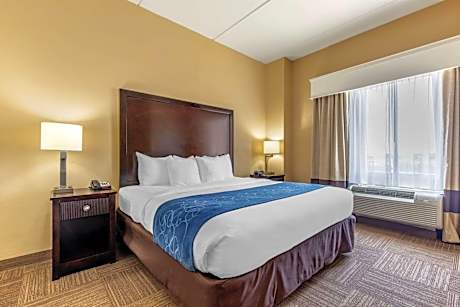 Ideally located in the heart of Frisco, Texas just north of Dallas, the Comfort Suites At Frisco Square/Pizza Hut Park is adjacent to Pizza Hut Park stadium, Fieldhouse USA sports complex and Frisco Square. The Hall Office Park, Frisco Conference Center, Dr Pepper Ballpark, Dr Pepper StarCenter - Frisco multipurpose venue and Stonebriar Center mall are all minutes away from this hotel. Additional points of interest include the Hall Office Park, Legacy Town Center, The Shops at Legacy, Hawaiian Falls The Colony water park and the Frisco Heritage Museum. Enjoy a variety of golf courses, parks, outdoor recreation areas, shopping centers and spas nearby. Several restaurants, cocktail lounges, coffee shops and cafés are located in the surrounding area; some are within walking distance to the hotel. This hotel is pleased to offer its guests features and amenities like free wireless high-speed Internet access, free newspaper, free parking, free local calls and free transportation to local corporate offices within eight miles (12-hour advance reservation required) Enjoy our free hot breakfast featuring eggs, meat, yogurt, fresh fruit, cereal and more. If you're leaving early, a Your Suite Success Grab & Go bag is available for the two hours prior to breakfast. Unwind after a stressful day in our indoor pool and indoor hot tub, and keep your fitness routine going during your visit in our spacious exercise room. We have an on-site business center that provides travelers with free access to computers and printers. Copy and fax services are also available for a small fee. Our well-appointed guest rooms are equipped with 32-inch flat-screen televisions, coffee makers, microwaves, refrigerators, work desks, curved shower rods, hair dryers, irons, ironing boards and expanded cable television with free HBO movies. Connecting rooms are available upon request. For added convenience, we have a convenience store offering snacks, beverages and sundry items. We also offer coin-operated laundry facilities and valet cleaning service.