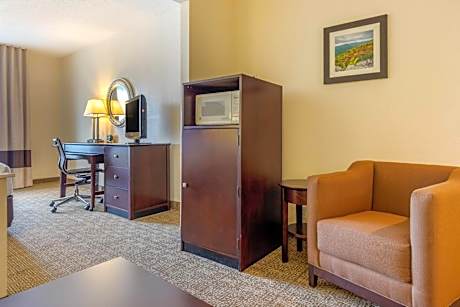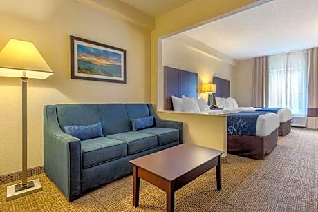 The Comfort Suites hotel is located just minutes from Charlotte and offers convenient access to Interstate 85, US 74 and Highway 321. The Charlotte-Douglas International Airport is only 13 miles away. This Gastonia, NC hotel is close to exciting points of interest, including Daniel Stowe Botanical Garden, U.S. National Whitewater Center, Billy Graham Library, The Schiele Museum of Natural History, McAdenville Christmas Town USA, Carowinds theme park and Lowe's Motor Speedway. Visitors will enjoy browsing the stores at Westfield Eastridge Shopping Center, SouthPark Mall and Concord Mills. This North Carolina hotel is within a few miles of many restaurants and cocktail lounges. Golf courses, tennis courts, movie theaters, billiards rooms and bowling alleys are all located in the surrounding area. Full-service amenities and features include free coffee, manager's reception Monday through Wednesday, free wireless high-speed Internet access, free local calls, free newspaper. Enjoy our free hot breakfast featuring eggs, meat, yogurt, fresh fruit, cereal and more, including your choice of hot waffle flavors. If you're leaving early, a Your Suite Success Grab & Go bag is available for the two hours prior to breakfast. Guest at this Gastonia, NC hotel will enjoy relaxing in the seasonal outdoor pool and working out in the fitness center. For guests who prefer extensive exercise facilities, free admission to the YMCA fitness center is also provided. This all-suite hotel understands the needs of business travelers. The on-site 24-hour business center offers free copy and fax services. All suites come equipped with generous work desks and voice mail. This North Carolina hotel has plenty of meeting space for corporate meetings and receptions. The hotel's banquet and meeting facilities can host most events and business functions. Event planners can choose from theater, classroom or conference style settings. Most rooms contain wet bars and audio-visual aids are available. A personal sales coordinator is available to help meeting planners with catering menus and other options to create a successful and memorable event. All spacious suites come equipped with microwaves, refrigerators, coffee makers, hair dryers, irons, ironing boards and separate sitting areas with sofa sleepers. Keep your electronic devices charged with the recharge device including AC and USB outlets provided in all guest rooms. For special getaways, enjoy a suite with a whirlpool bathtub. This is a nonsmoking hotel. Guest laundry facilities and same-day valet cleaning services are available.