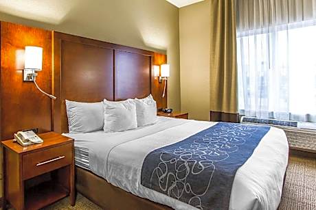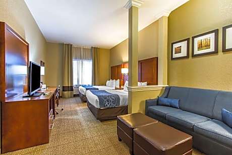 The Comfort Suites Mattoon East hotel is located at Interstate 57 and Route 16. This hotel is less than 10 miles from attractions like Eastern Illinois University, Lake Land College, Lake Mattoon and the Lincoln Log Cabin. Amish Country is about 15 miles away. Rockome Gardens is also nearby. There is a variety of restaurants within walking distance of the hotel. The Coles County Memorial Airport is only two miles and the Amtrak train station is three miles away. Guests can also enjoy golfing at the nearby Meadowview Golf Course. Golf packages are available. Full-service amenities include: Free newspaper, Free local calls, Free passes to YMCA, Meeting room for up to 20 people and Free wireless high-speed Internet access available in all rooms. Your Morning Breakfast is full of hot and delicious options, making breakfast at the Comfort Suites Mattoon East the perfect way to start your day. Enjoy our free hot breakfast featuring eggs, meat, yogurt, fresh fruit, cereal and more, including your choice of hot waffle flavors! If you're leaving early, a Your Suite Success Grab & Go bag is available for the two hours prior to breakfast. This hotel also provides business travelers with a 24-hour business center with free high-speed Internet access. Guests will also enjoy the fitness center, indoor pool and whirlpool. Two-room suites and whirlpool suites are available. In addition to standard amenities, all rooms include ceiling fans, coffee makers, refrigerators and microwaves. A guest laundry room and dry cleaning services are also available.