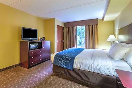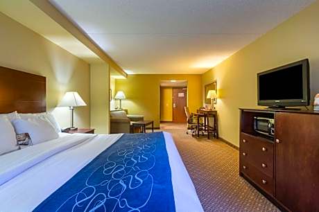 Located in the heart of Gettysburg's historic district, the Comfort Suites hotel is just minutes from many popular attractions and historical landmarks. This hotel is close to the Gettysburg National Military Park, home of the Gettysburg Cyclorama center museum, the Gettysburg National Cemetery and the historic Gettysburg Battlefield. Enjoy many outdoor recreational activities nearby, like golfing, biking, fishing, hiking, horseback riding, tennis and skiing. A variety of shopping centers, entertainment options, restaurants and cocktail lounges can be found in the surrounding area, including several within walking distance. Hotel offers many fine features and amenities, including: Free coffee, Free wireless high-speed Internet access, Free weekday newspaper and Free local calls Your Morning Breakfast is full of hot options, making breakfast at the Comfort Suites the perfect way to start your day. Enjoy our free hot breakfast featuring eggs, meat, yogurt, fresh fruit, cereal and more, including your choice of hot waffle flavors. If you're leaving early, a Your Suite Success Grab & Go bag is available for the two hours prior to breakfast. After a busy day of work or play, enjoy a refreshing swim in the indoor heated pool or an invigorating workout in our exercise room. All guest rooms come equipped with coffee makers, microwaves, refrigerators, sofa sleepers, flat-screen televisions, irons and ironing boards. Keep your electronic devices charged with the recharge device including AC and USB outlets provided in all guest rooms. Some rooms feature whirlpool bathtubs. Our business center offers a public computer with Internet service and access to copy and fax services. Business travelers to this Pennsylvania hotel will also welcome additional conveniences like work desks in every room and on-site meeting facilities. Valet cleaning services and tourist information are both available for added guest convenience. Ample parking is provided on the premises and can accommodate most trucks, RVs, busses and cars.