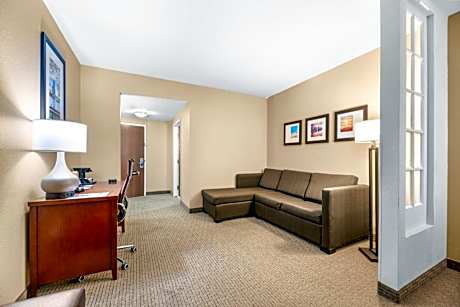 This all-suite hotel offers free airport transfer service to and from Orlando International Airport, which is 9 minutes' drive away. Guests will enjoy an outdoor pool, hot tub, and free property-wide WiFi. Comfort Suites Orlando provides a hot breakfast buffet every morning. Guests can use the fitness center or the outdoor pool. A business center is also available on site. A transfer service to the Orange County Convention Center is offered for a surcharge. Guest suites at the Orlando Comfort Suites are equipped with 32-inch (32 in) flat-screen TVs. Microwaves and mini-refrigerators are also included in each suite. Extended parking options available after check-out for a fee. Universal Studios and SeaWorld theme parks are within a 15-minute drive of the Comfort Suites in Orlando. The Orange County Convention Center is 8.8 mi from the property.