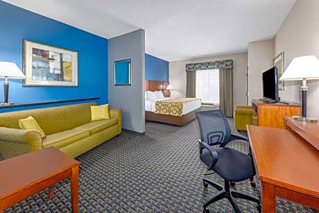 The Baymont by Wyndham Pratt is located near U.S. Route 54, offering easy access to many nearby points of interest. This hotel offers an array of features and amenities, including: Indoor heated pool and hot tub, guest laundry facilities, business center with two computers, meeting room. All suites come equipped with free wireless high-speed Internet access, flat-screen televisions, refrigerators, coffee makers, microwaves, clock radios with MP3 jacks, hair dryers, pillow-top mattresses, irons and ironing boards. Keep your electronic devices charged with the recharge device including AC and USB outlets provided in all guest rooms. Morning Breakfast features eggs, meat, yogurt, fresh fruit, cereal and more, including a choice of hot waffle flavors. If you're leaving early, a Grab & Go bag is available for the two hours prior to breakfast. Business travelers will welcome additional conveniences like the in-room desks, and access to copy and fax services. Ample parking is available and can accommodate most trucks, RVs, buses and cars. This pet-friendly hotel (additional fees apply). This hotel is just minutes from the Pratt County Historical Museum, Pratt Music Theater, Pratt Community College and Pratt Regional Medical Center. Downtown Pratt is home to many shops, antique stores, historic buildings and entertainment venues. A variety of restaurants ranging from family-friendly to fast food can be found in the surrounding area.
