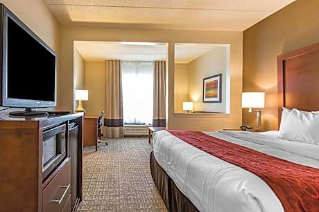 The Comfort Suites hotel is just two miles from Eastern Kentucky University, the third largest university in the state. Hotel features and amenities include: Free local calls, Free weekday newspaper, Free coffee. All spacious guest rooms include refrigerators, microwaves, irons, ironing boards, hair dryers and coffee makers. Whirlpool suites are available for special occasions. Guests of this hotel can enjoy the exercise room, indoor pool and hot tub. Business travelers will appreciate modern conveniences like two-line telephones and access to copy and fax services. Free Morning Breakfast features eggs, meat, yogurt, fresh fruit, cereal and more, including a choice of hot waffle flavors. If you're leaving early, a Grab & Go bag is available for the two hours prior to breakfast. Richmond is 25 miles southeast of Lexington, in the state's beautiful Bluegrass Region. Area attractions include: Keeneland racetrack, White Hall State Historic Site, Bybee Pottery, Fort Boonesborough State Park, Beera College Madison County is blessed with a pleasant, four-season climate and ample outdoor recreational attractions, including the nearby Central Kentucky Wildlife Management Area. There is also a wide selection of antique shops, cultural events and museums nearby.