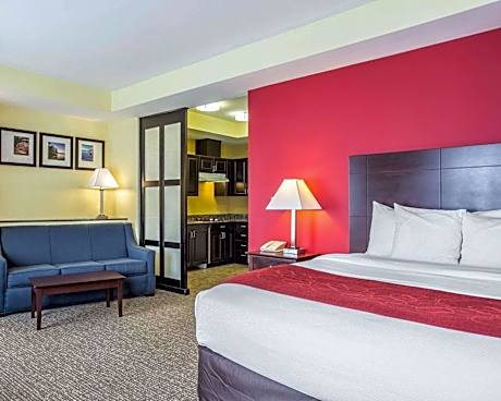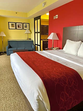 This all-suite Comfort Suites Rock Hill features an indoor heated pool, hot breakfast buffet. The hotel is adjacent to Interstate 77 and is 4.2 mi from Rock Hill city center. Free WiFi, a flat-screen cable TV, and microwave are included in all rooms at this Rock Hill Comfort Suites hotel. A small refrigerator and coffee-making facilities are also provided. The fitness center has cardio and weightlifting equipment, and the business center offers a computer, copy, and fax services. Historic Brattonsville, a living history village, is 15 mi away. The hotel is 9 minutes’ walk from Rock Hill Galleria shopping center and 9 minutes’ drive from Winthrop College.