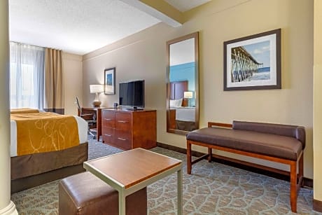 The Comfort Suites Southport - Oak Island and Caswell Beach is located just 30 minutes from Fort Fisher/ Kure Beach by ferry and three miles from the beaches of Oak Island. It is minutes from area attractions like the Orton Plantation, the North Carolina Aquarium at Fort Fisher, Bald Head Island and the USS North Carolina Battleship Memorial. There is a golf course three miles from the hotel. Guests can enjoy several antique shops and specialty shops in the town of Southport. A variety of restaurants are located in the surrounding area. Free hot breakfast is provided and for guests that are leaving early, a breakfast bag is available for the two hours prior to breakfast. Guests can enjoy the free wireless high-speed Internet access in all rooms, free local calls. Guests can also enjoy the fitness center and seasonal outdoor pool. Pets are welcome with a nightly fee. This hotel provides business travelers with conveniences like voice mail and access to copy and fax services. All suites include refrigerators, microwaves, irons, ironing boards, coffee makers, hair dryers and cable television. Keep your electronic devices charged with the recharge device including AC and USB outlets provided in all guest rooms.