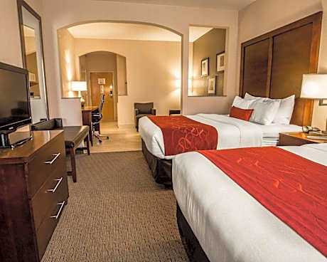 Comfort Suites Stafford Near Sugarland features an outdoor swimming pool, fitness center, a garden and shared lounge in Stafford. With free WiFi, this 3-star hotel offers a 24-hour front desk and an ATM. The hotel has a hot tub and luggage storage space. Guest rooms will provide guests with a fridge. A business center and vending machines with snacks and drinks are available on site at the hotel. Constellation Field is 5 miles from Comfort Suites Stafford Near Sugarland, while Smart Financial Centre is 6.9 miles away. William P. Hobby Airport is 24 miles from the property.