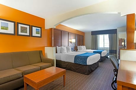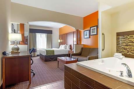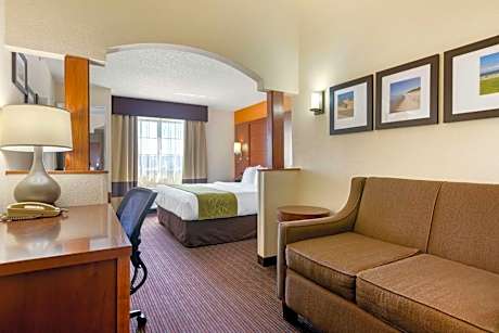 The Comfort Suites hotel is located off Interstate 94, close to the beaches of Lake Michigan and Tabor Hill Winery and Restaurant. This hotel is minutes from the Curious Kids' Museum, Grand Mere State Park, Lake Michigan College and Warren Dunes State Park. The University of Noter Dame is 37 miles and the South Bend Regional Airport is 30 miles away. Visitors will enjoy browsing the stores at the nearby shopping mall. A variety of restaurants and cocktail lounges are located in the surrounding area. In addition, some restaurants are within walking distance, Two of the area's finest restaurants, Tosi's Restaurant and the Grand Mere Inn Restaurant, are within one mile of the hotel. Your Morning Breakfast is full of options. Enjoy our free hot breakfast featuring eggs, meat, yogurt, fresh fruit, cereal and more, including your choice of hot waffle flavors! If you're leaving early, a Your Suite Success Grab & Go bag is available for the two hours prior to breakfast. This hotel offers many full-service amenities, including free local calls and free weekday newspaper. Be sure to take advantage of the hotel's fitness center, sauna, sundeck, indoor heated pool and hot tub. Business travelers to Stevensville, MI will appreciate high-speed Internet access, voice mail and access to copy and fax services. Meeting rooms are available to accommodate most events and business functions. All guest rooms come equipped with refrigerators, microwaves, irons, ironing boards, coffee makers and spacious showers. Keep your electronic devices charged with the recharge device including AC and USB outlets provided in all guest rooms. This all-suite hotel features kid suites with bunk beds, perfect for large families. Loft rooms include two bedrooms and parlor areas. Whirlpool suites, some with fireplaces and parlors, are available for that special occasion. Guest laundry facilities are located on the property as an added guest convenience.