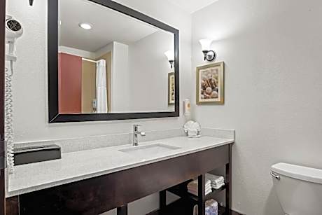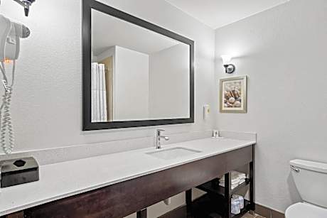 The Comfort Suites hotel is located near many area attractions. The Texas Motorplex racetrack and Scarborough Renaissance Festival are five miles from this hotel. Additional points of interest include Screams Halloween Theme Park and Getzendaner Memorial Park. Historic downtown Waxahachie is minutes away, featuring unique attractions like the Gingerbread Trail where you can enjoy arts and crafts fairs along with guided tours of many buildings that showcase Victorian, Gingerbread, Gothic Revival and Queen Anne architecture. Several entertainment venues, shopping centers and restaurants are close to the hotel. Hotel offers full-service features like: Free high-speed Internet access, Free weekday newspaper and Free local calls. Your Morning Breakfast is full of hot options, making breakfast at the Comfort Suites the perfect way to start your day. Enjoy our free hot breakfast featuring eggs, meat, yogurt, fresh fruit, cereal and more, including your choice of hot waffle flavors. If you're leaving early, a Your Suite Success Grab & Go bag is available for the two hours prior to breakfast. After a long day of work or play, guests of this Texas hotel can relax in the seasonal outdoor pool and hot tub or unwind in the exercise room. Corporate travelers will welcome additional conveniences provided in the on-site business center, including access to copy and fax services. There is a banquet and meeting room located on the premises that can accommodate up to 99 people. Whether you want to host a small business seminar or large group event, consider hosting your next function at the Comfort Suites hotel. All guest rooms are suites that provide conveniences like flat-screen televisions, microwaves, refrigerators, coffee makers, curved shower rods, hair dryers, irons, ironing boards and cable television. Keep your electronic devices charged with the recharge device including AC and USB outlets provided in all guest rooms. Coin-operated laundry facilities are located on the premises and ample parking is provided.