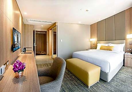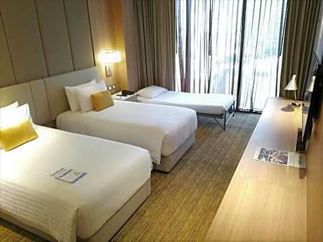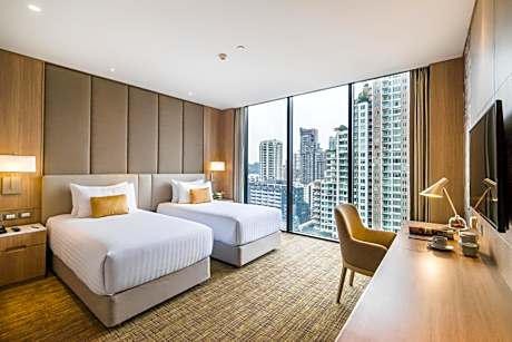 SKYVIEW Hotel Bangkok - Em District provides flawless service and all the necessary facilities for visitors.Stay connected with your associates, as complimentary Wi-Fi is available during your entire visit. To facilitate your arrival and departure, you can pre-book airport transfer services prior to checking in. The hotel offers taxi and car hire amenities for your ease in navigating around Bangkok. When arriving by car, you'll be grateful for the on-site complimentary parking at hotel.The hotel offers reception amenities including concierge service, luggage storage and safety deposit boxes to ensure a comfortable stay for guests.Whether it's an extended stay or simply needing fresh attire, dry cleaning service and laundry service provided by hotel ensures your cherished travel garments stay spotless and accessible. Your stay will be comfortable with the presence of room service and daily housekeeping as an in-room amenity for your relaxation and enjoyment.Smoking is permitted solely in the specified smoking zones allocated by hotel. In order to ensure the utmost level of relaxation, the guestrooms feature an inviting design and are equipped with all basic necessities, creating a delightful stay experience. To ensure a pleasant stay, a selection of rooms at hotel come furnished with linen service, blackout curtains and air conditioning, all designed with your ease in mind. Several chosen accommodations at SKYVIEW Hotel Bangkok - Em District have a separate living room incorporated into the room design. In select rooms, visitors can enjoy a touch of amusement with the availability of television and cable TV for their entertainment needs. Within specific rooms, a refrigerator, bottled water, a coffee or tea maker, instant coffee, instant tea and mini bar is conveniently available for your use. Understanding the significance of bathroom facilities in enhancing visitor contentment, hotel offers a hair dryer, toiletries and bathrobes within a few chosen chambers. Start your day stress-free at SKYVIEW Hotel Bangkok - Em District as breakfast is made available for you on the premises. Various excellent meal offerings at hotel ensure that enticing and easily accessible options are constantly available. Upon your arrival, don't miss experiencing bar for enjoyable in-house evening entertainment. Throughout the day, engage in the entertaining activities available at SKYVIEW Hotel Bangkok - Em District. Unwind by the pool at hotel and cherish a leisurely moment. Enjoy a refreshing beverage al fresco at hotel's poolside bar savoring your preferred concoction. Guests who enjoy maintaining their fitness regimen while on holiday can visit the fitness center provided by hotel.