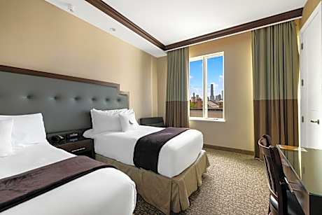 Located in Williamsburg, Brooklyn, Aura Hotel Brooklyn features central access to many of Brooklyn's attractions and venues. Bicycle and luggage storage are available, and free WiFi access is also available. The hotel includes patios and a garden. Each room at the hotel features a microwave, a refrigerator, a coffee machine and a safe. The bathrooms include a bath and a shower. Interconnected rooms are also available. Access to the Flushing Avenue underground station is a 12-minute walk away, and the Williamsburg and Manhattan Bridges are less than 2 mi away. The Barclays Center Arena is 2 mi away.