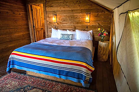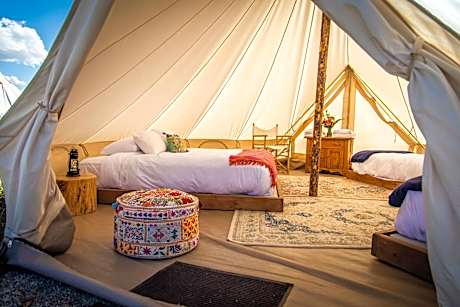 Located in one of the most gorgeous places in the United States, within a few hours’ drive from amazing cities such as Salt Lake City, Utah and Jackson Hole, Wyoming. It is conveniently located on Highway 89, the scenic route to Grand Teton National Park and Yellowstone National Park. The Ranch has a variety of luxurious tents and wagons to choose from. Choose from one of the most unique Conestoga wagon that can sleep 2 to 6 people, the traditional tents for a more traditional camping experience, or the Grand Tents with in-suite bathrooms! Family members of all ages will treasure the breathtaking Glamping experience. Guests can choose between tents or wagon circles to create your perfect private family adventure and make memories that everyone will remember for a lifetime. In the property guests may find a Restaurant and some indoor as well as outdoor activities.