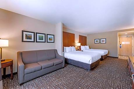 The Comfort Inn and Suites Orem is located 5 miles from Brigham-Young University. The hotel features a heated indoor pool and rooms with cable TVs. The rooms at the Orem Comfort Inn and Suites are furnished with work desks and free Wi-Fi. Each room includes a coffee maker and ironing facilities. Guests at the Comfort Inn Orem can relax in the hot tub or work out in the gym. This pet-friendly hotel has guest laundry facilities. Continental breakfast is served daily. Comfort Inn is a 13-minute drive from both Utah Lake and Provo Canyon. The hotel is 10 miles from the Bridal Veil Falls.