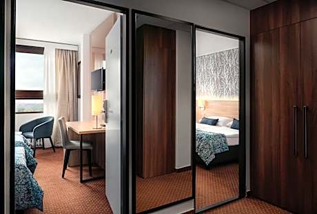 The Olšanka Congress & Wellness Hotel enjoys a quiet location in the district of Žižkov, only 9 minutes by tram or underground from the old town of Prague. Wenceslas Square and National Museum can be reached within 1.2 mi. A tram stop offering a direct connection to the city center is located right in front of the hotel. An underground station (line A) and a large shopping mall (Atrium Flora) are only 1 tram stop away. The hotel features large Sports and Wellness center with swimming pool with aqua aerobic lessons, courts for badminton, table tennis, fitness center, 5 saunas, whirlpool, massages and a hair studio, all available for surcharge. The congress complex includes the great congress hall for a maximum of 600 participants participants, as well as several small meeting rooms. The Olšanka Congress & Sports Hotel is located below the Žižkov TV tower, which is surrounded by a large park and is the modern landmark of Prague. Car parking in garage is on site, upon availability and at a surcharge. Bus parking is also possible, on request and for an additional fee.