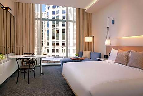 - Chic guestrooms boasting city views, a 55-inch HDTV, stocked mini-bar, and espresso machines for a luxurious stay.