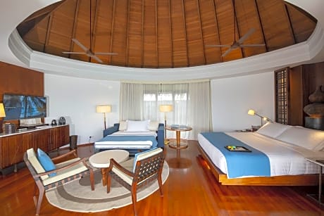 Offering guests a luxurious island holiday, Constance Halaveli Resort features spacious villas with private plunge pools. Providing comprehensive spa and diving facilities, it has 3 dining options and tennis courts. Featuring hardwood flooring and well-crafted furnishings, open-concept villas feature views of surrounding greenery or the lagoon. Each well-equipped villa has amenities like a flat-screen TV and free Wi-Fi. To relax, guests can indulge in a massage at the spa, or go on fishing and diving trips. Regular workouts can be maintained at the well-equipped fitness center. JAHAZ Restaurant serves international dishes and is available for breakfast and dinner. Other dining options include fresh seafood at MEERU and Asian food at JING.