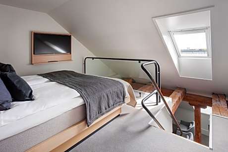 This single room has wooden beams and views of the old buildings in Copenhagen. The spacious room is 17 square yards and features: