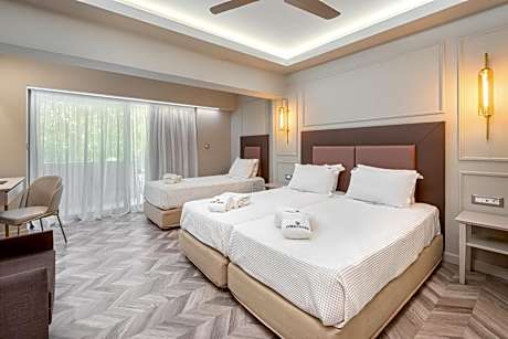 The adults-only Corfu Mare is a newly renovated boutique hotel, ideally located in a quiet area just 1.6 mi from Corfu Town. With views over the Ionian Sea, it features a pool and hot tub with fresh water. Refreshments and light meals are available to enjoy on the pool deck. To stimulate the guests senses, rooms are decorated according to themes with trendy and unusual wallpapers, colors and furniture. There are 2 rooms for guests with mobility issues. Guests can make use of the well equipped gym. The private parking area which includes electric charger station and the strategic location near the center of Corfu Town make the Corfu Mare Boutique Hotel -Adults only the ultimate relaxation destination.