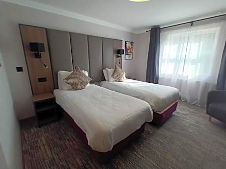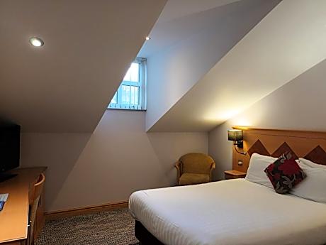 This compact room has its own bathroom, with either a shower cubicle or a shower over a bath. As this room is on the top floor of the hotel it is an attic-style room, with a sloping roof and either a Velux or a dorma window.