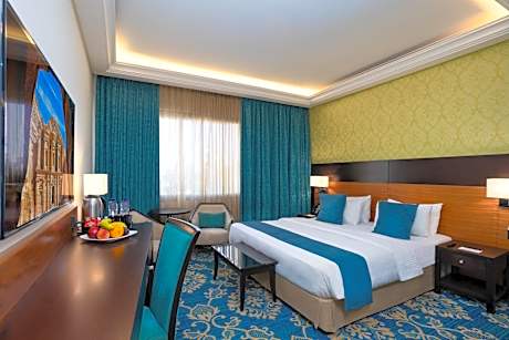 At Corp Amman Hotel, exceptional service and top-notch amenities create a memorable experience for guests.Complimentary internet access is available in the hotel to ensure you stay connected during your visit.Arrange your trips to and from the airport using the hotel's convenient transportation services booking. Discover the wonders of Amman with ease by utilizing the services provided by taxi and car hire. For guests with their own vehicle, parking facilities are provided. Continuously receive the support you require through front desk amenities such as concierge service, express check-in or check-out, luggage storage and safety deposit boxes. At the hotel, their ticket service and tours is also capable of assisting with booking tickets and securing reservations for entertainment and adventures. Always look your best in your preferred attire with the dry cleaning service and laundry service provided at Corp Amman Hotel. Craving relaxation? In-room amenities such as 24-hour room service, room service and daily housekeeping allow you to maximize your time spent inside the room.For the health and well-being of all guests and staff, smoking is restricted exclusively to assigned zones. Accommodations come equipped with all the conveniences required for a restful night's slumber. A selection of rooms feature linen service, blackout curtains and air conditioning to ensure your comfort and convenience. A few chosen rooms are equipped with daily newspaper, television and cable TV to ensure guest amusement. In certain rooms, the hotel offers visitors access to a coffee or tea maker, bottled water and mini bar. Corp Amman Hotel offers a hair dryer, toiletries and bathrobes in the restrooms of specific accommodations. A delightful breakfast is the perfect way to begin your day, and at Corp Amman Hotel, you can always indulge in a scrumptious meal on-site.All adore a delightful cup of coffee! An on-site coffee shop ensures you can relish a cup of authentic, freshly-brewed coffee every morning -- or whenever you desire it.Allow your journey to be free from the pangs of hunger! On-site eateries offer delicious and accessible meal choices. At Corp Amman Hotel, guests with diverse dietary needs are accommodated by offering options like halal among the different types of cuisine. At Corp Amman Hotel, guests can take pleasure in the delightful recreational amenities provided for their entertainment. Conclude your days in complete tranquility by paying a visit to massage, salon, steam room, spa and sauna for ultimate relaxation.At Corp Amman Hotel, a wide array of amenities guarantees a fulfilling experience throughout your visit. Make your holiday truly memorable by taking a rejuvenating plunge into the pool.At the hotel fitness center, you have the option to engage in your daily exercise routine or simply alleviate your jet lag by breaking a sweat.