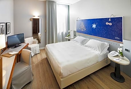 Cosmo Hotel Torri is a 2-minute drive from the Vimercate South motorway exit, 4.3 mi from the Monza race track. It offers uniquely styled rooms with air conditioning and an LCD satellite TV. Apartments are located in an annex building just 164 feet away and include either a kitchen or kitchenette and free wired internet. Some rooms have free Wi-Fi. San Valentino restaurant serves national and international cuisine, and in the summer months, the elegant dining room opens out onto the terrace. You can also enjoy a drink in the informal Sphinx bar. Cosmo Hotel's fitness center has cardiovascular and weight machines, and guests can relax in the sauna and Turkish bath. Milan Linate Airport is a 20-minute drive from the Cosmo Hotel Torri and you can reach Milan's historic center in only 30 minutes by car. The hotel offers free on-site parking.