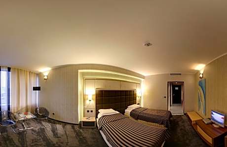 Located in the center of Ruse only a short walk away from the Danube River, Hotel Cosmopolitan offers free Wi-Fi access, free parking and a large spa area with free fitness area. Hotel Cosmopolitan has indoor and outdoor pools and a modern fitness room. All the rooms are air conditioned. The spa area features a sauna, Roman and Turkish steam baths, an infrared cabin, a solarium, and a wide range of massages and beauty treatments. The restaurant serves international cuisine, fish specialties, and a wide selection of Bulgarian and international wines. In summer you can enjoy your meals in the garden, which has a fountain. There are 3 conference rooms.