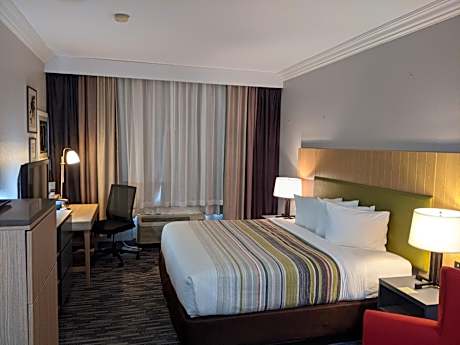 This Nashville Country Inn & Suites by Radisson is less than 5 minutes' drive from The Grand Ole Opry and Bass Pro Shops. It offers a continental breakfast with a few hot items, a seasonal outdoor pool, and free WiFi. The breakfast includes a selection of eggs, sausage, and bacon is every morning at the Opryland North Country Inn and Suites by Radisson. A 32-inch flat-screen TV, microwave, and refrigerator are provided in each room at this Nashville Country Inn and Suites. Rooms are decorated in rich reds and golds and also include a work desk and a coffee machine. The business center is located off of the lobby and laundry facilities are available 24 hours a day. Guests can also relax and read a book in the common library on site. Downtown Nashville, Tennessee is 9.9 mi from the hotel. Nashville International Airport is 10 minutes' drive from the hotel.