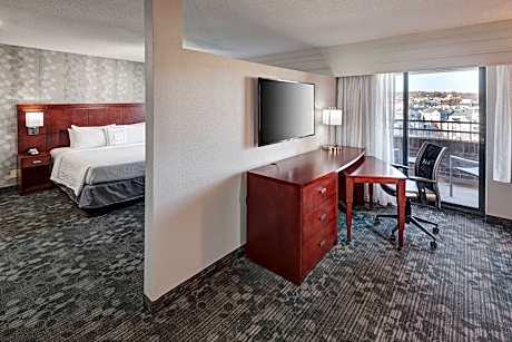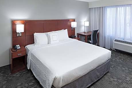 This hotel is a 10-minute drive from historic Old Town Virginia. The hotel offers free Wi-Fi and a gym. Guest rooms at the Courtyard Alexandria feature a 32-inch flat-screen TV with cable channels and HBO. A work desk and coffee maker are also included. The Bistro at the Alexandria Courtyard offers a morning breakfast and evening dinner service with cocktails. Arlington National Cemetery is within a 20-minute drive of the Courtyard. Washington, D.C. is within 9 miles of the hotel.