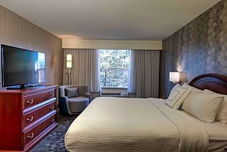 Courtyard Chapel Hill is opposite Meadowmont Village and Friday Center. It features an indoor pool, a gym, and a business center. Rooms offer free Wi-Fi and a 43-inch flat-screen TV. A work desk and coffee-making facilities are offered in each room at Courtyard Chapel Hill. The traditionally styled rooms also include hairdryers and ironing facilities. Guests have access to meeting rooms and an airline boarding pass station. The hotel also offers laundry facilities and valet dry cleaning services. Chapel Hill Courtyard’s restaurant is open for breakfast and dinner. It services American cuisine in a casual atmosphere. This hotel is within 2 mi of North Carolina Botanical Garden, the University of North Carolina and Kenan Stadium. It is about 15 minutes' drive from Raleigh-Durham International Airport.
