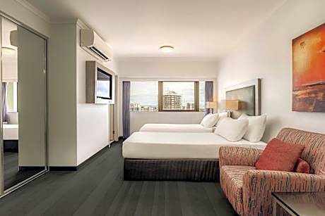 The Courtyard by Marriott Darwin is a locally built, owned and located in the center of Darwin. The stylish The Courtyard by Marriott Darwin offers an onsite restaurant and bar, an outdoor swimming pool and a rooftop fitness center. Guests enjoy free WiFi and a 24-hour reception. The Courtyard by Marriott Darwin is located on Smith Street in Darwin CBD, just 328 feet from a bus stop and 5 minutes' walk from St Mary Star of the Sea Catholic Cathedral. Guests can enjoy a 2-minute walk to Mitchell Street where there are a range of restaurants, cafes, bars and shops or take 6-minute walk to the Esplanade. It is a 5-minute drive from Darwin Convention Center. Darwin Airport and Charles Darwin National Park are both within 15 minutes' drive. Private parking is available on site. Offering 186 rooms and suites with, air-condition. All rooms offer an private bathroom with a shower, and a hairdryer. Crisp linens, pillow top beds and deluxe toiletries are included. Most rooms feature views of either Cullen Bay or Darwin cityscape. Guests can enjoy DBar & Restaurant's fresh, seasonal and modern Australian cuisine from the comfort of room service or alfresco dining surrounding the pool. Both buffet and à la carte options for breakfast and dinner at DBar &Restaurant.