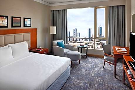 Great care is taken to ensure guests experience comfort through top-notch services and amenities.The hotel offers car hire amenities to assist you in discovering your desired offerings in Kuwait. When arriving by car, take advantage of the hotel's convenient on-site parking facilities.The hotel offers reception assistance, including concierge service, to ensure guest satisfaction. Your stay will be comfortable with the presence of room service and daily housekeeping as an in-room amenity for your relaxation and enjoyment. In order to ensure the utmost level of relaxation, the guestrooms feature an inviting design and are equipped with all basic necessities, creating a delightful stay experience.Selected rooms offer in-room amusement like cable TV as a source of entertainment for guests to enjoy.Within specific rooms, instant tea and mini bar is conveniently available for your use. Understanding the significance of bathroom facilities in enhancing visitor contentment, hotel offers a hair dryer and bathrobes within a few chosen chambers.To experience refined leisure, do not miss the opportunity to drop by the executive lounge. Start your day stress-free at Courtyard by Marriott Kuwait City as breakfast is made available for you on the premises.How about kicking off each day of your getaway with a delicious cup of coffee? At the hotel, relish in the invigorating taste of a freshly brewed, excellent coffee.Visitors with specific dietary preferences can savor a variety of culinary styles at Courtyard by Marriott Kuwait City, featuring halal choices to accommodate their needs. Upon your arrival, don't miss experiencing bar for enjoyable in-house evening entertainment.Throughout the day, engage in the entertaining activities available at Courtyard by Marriott Kuwait City.Unwind effortlessly each day by exploring the salon, conveniently situated within the hotel.