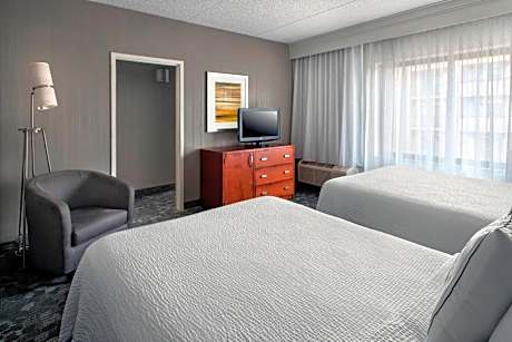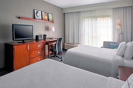 Located next to Newark International Airport, this hotel is a short subway ride from New York City. The hotel offers free 24-hour shuttle service and on-site restaurant. Guest rooms at the Courtyard Newark Liberty International Airport include a 25-inch cable TV and pay-per-view movies. A coffee maker and work desk with ergonomic chair are also featured. Guests can enjoy the gym at the Newark Liberty International Airport Courtyard. The Bistro at the Newark Courtyard Airport serves breakfast with Starbucks coffee, dinner, and evening cocktails. The Market is a 24-hour deli serving sandwiches, snacks and drinks. University Heights is 4.3 mi away from this property and Newark city center is 3.5 mi away. New Jersey Transit airport station is 3.7 mi away from the Courtyard Newark Liberty International Airport.