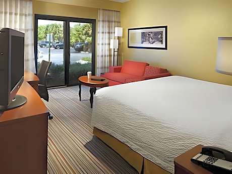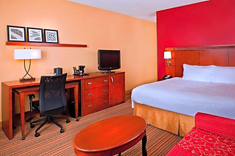 Courtyard Orlando Airport hotel offers a free shuttle to Orlando MCO Airport, which is 2 miles away. On-site amenities include a heated outdoor pool, 24-hour fitness center and free Wi-Fi. All rooms at Courtyard Orlando Airport are air-conditioned and have a balcony or patio. Satellite TV and a desk with ergonomic chair are also in each room. Dining options include The Bistro, which serves American cuisine during breakfast, lunch, and dinner. A Starbucks Coffee branch is also located inside the hotel. Guests have access to the Courtyard Orlando Airport’s boarding pass printing center. The Market, which stocks snacks and beverages, is open 24/7. The hotel is directly off Highway 436. Universal Studios Orlando can be reached with a 12-mile drive.