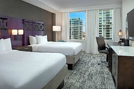 Located in an historic building in the Gaslamp Quarter, this downtown San Diego hotel offers modern rooms with free Wi-Fi and an on-site restaurant. The San Diego Zoo and Balboa Park are 2 miles away. A refrigerator, microwave and coffee maker are featured in guest rooms at Courtyard by Marriott San Diego Downtown. A flat-screen cable TV with pay-per-view movies is included. The Gold Reserve Kitchen and Bar serves breakfast, lunch and dinner. A Starbucks espresso bar and a 24-hour snack shop are also located on site. Room service is available. A 24-hour fitness center and business center are located on site for guest use. Concierge services are available. The hotel offers valet parking for a fee. The San Diego Convention Center is 15 minutes' walk away. SeaWorld San Diego is 7 miles from San Diego Downtown Courtyard by Marriott.