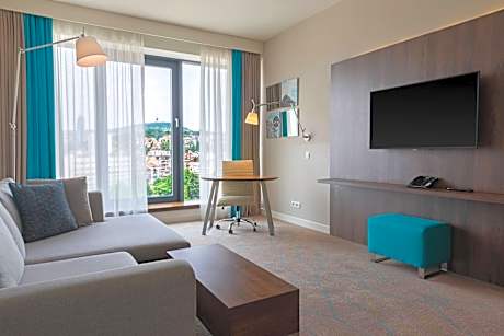 Offering a restaurant and a fitness center available 24 hours a day, Courtyard by Marriott Sarajevo is located in the center of Sarajevo, right next to the Miljacka River. The scenic Baščaršija area with restaurants and shops is 0.9 mi away. Offering views of the city, the modernly furnished rooms come with a 42'' flat-screen satellite TV, a mini fridge and an electric kettle. Each room contains a spacious bathroom fitted with a shower. Free high-speed WiFi internet access is available throughout the hotel. The property's à la carte restaurant serves local and international dishes. The lobby features a bar, and business facilities can be found on site as well. The Sky Lounge, located on the top floor, serves a number of different refreshments and provides a panoramic view of the city. A pedestrian lane with shops can be reached in 656 feet, while a shopping center is 1640 feet from the property. Sarajevo National Theater is 1969 feet away. Sarajevo Airport is located at a distance of 5 mi.