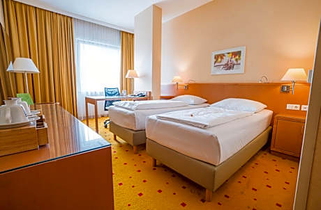 Ibercity Wien Schönbrunn in Vienna provides air-conditioned rooms with free WiFi. It features a 24-hour desk, on-site paid parking and a bar. Every room comes with a desk, a flat-screen TV and a private bathroom. All rooms include a wardrobe and offer a view. At the hotel, a tour and ticket desk as well as a cleaning service are available. There is a fitness center. Guests may enjoy drinks at the hotel bar and Austrian or Mediterranean dishes in the restaurant. A buffet-style breakfast including regional products is served daily. Ibercity Wien Schönbrunn is 656 feet from the nearest underground station and 2297 feet from Schönbrunn Palace with its parkland surroundings. The distance to the city center is around 3.1 mi. Vienna International Airport is located within 12 mi of the hotel.