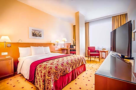 Ibercity Wien Schönbrunn in Vienna provides air-conditioned rooms with free WiFi. It features a 24-hour desk, on-site paid parking and a bar. Every room comes with a desk, a flat-screen TV and a private bathroom. All rooms include a wardrobe and offer a view. At the hotel, a tour and ticket desk as well as a cleaning service are available. There is a fitness center. Guests may enjoy drinks at the hotel bar and Austrian or Mediterranean dishes in the restaurant. A buffet-style breakfast including regional products is served daily. Ibercity Wien Schönbrunn is 656 feet from the nearest underground station and 2297 feet from Schönbrunn Palace with its parkland surroundings. The distance to the city center is around 3.1 mi. Vienna International Airport is located within 12 mi of the hotel.