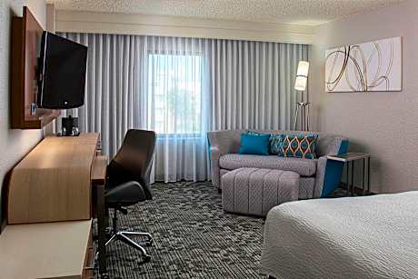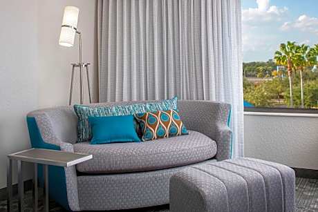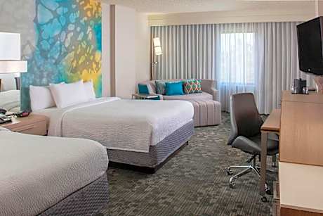 This Lake Buena Vista hotel is located 1 mi from Walt Disney World and offers on-site theme park ticket services and free Wi-Fi. A free transfer service is available. Courtyard Orlando Lake Buena Vista in Marriott Village features an indoor and outdoor swimming pool with a fitness center. The hotel also offers a food court with ice cream, pizza, deli items, and coffee. The Bistro, an on-site restaurant, serves breakfast and dinner. Guest rooms at the Lake Buena Vista Courtyard are equipped with cable TV and work desks. Coffee machines and refrigerators are also included. SeaWorld is 4.5 mi from the property.Universal Orlando Resort is 7.8 mi away. The Orange County Convention Center is 6.1 mi from the Courtyard by Marriott Orlando Lake Buena Vista in the Marriott Village.