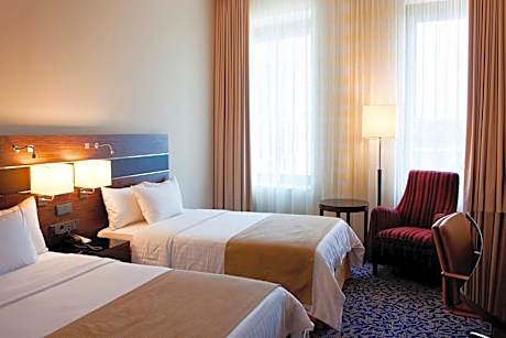 Featuring free WiFi, Courtyard by Marriott Vienna Prater/Messe is located right next to the Reed Messe Wien, Vienna’s exhibition and convention center, and only a 1-minute walk from the Krieau Underground Station with access to the city center within 10 minutes. The large spa and fitness center on the 8th floor offers modern equipment and a sauna with panoramic views of the entire city. The spacious, air-conditioned rooms include a flat-screen satellite TV, a tea/coffee maker, a small refrigerator, and a bathroom. Courtyard by Marriott Vienna Prater/Messe features a modern interior design and a spacious, trendy lobby with a lounge bar and a small shop. The restaurant serves Viennese and international cuisine, and a rich American buffet breakfast is available every morning. In summer, guests can dine on the terrace. The Prater Amusement Park is a 10-minute walk away, and the Giant Ferris Wheels can be reached on foot in 20 minutes. The Ernst Happel Stadium and the Stadion Center (shopping center) are a 15-minute walk away. The Green Prater, a large recreation area, is only a 5-minute walk from the hotel.