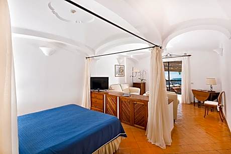 With its seafront location, Covo Dei Saraceni is in Positano. This 5-star hotel features free Wi-Fi, air-conditioned rooms overlooking the Mediterranean Sea, and an outdoor swimming pool equipped with sun umbrellas and lounge chairs. With elegant design and tile floors, rooms include a balcony and a satellite flat-screen TV. Each have a private bathroom decorated with Vietri ceramic tiles. Some feature a spa tub and terracotta floors from Ogliara. Breakfast is served daily and includes sweet and savory items. At the restaurant you can taste Mediterranean dishes and seafood specialties. Snacks and drinks are available at the bar. Covo dei Saraceni hotel is 65 ft from Positano’s beach, and Amalfi is a 15-minute drive away.