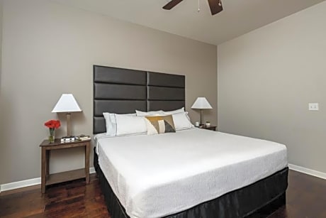 Along with an outdoor sky pool, this smoke-free apartment building has a zen garden, 24-hour fitness center and laundry facilites.Wifi in public areas is free. Each apartment provides a fully equipped kitchen. For a bit of entertainment, a flat-screen TV comes with complimentary Netflix, Hulu, Disney+ and ESPN+, where available.